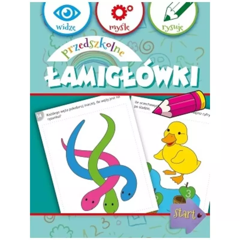 Seria „Widzę, myślę, rysuję“ to zbiór sześciu książeczek aktywizujących zawierających zadania kształcące spostrzegawczość, logiczne myślenie, proste umiejętności matematyczne oraz doskonalące układ ręka-oko. Wszystkie te sprawności są bardzo pomocne podczas szkolnej nauki, lecz ucząc, bawią. Słowem są znakomitą rozrywką i skuteczną nauką. W serii: Zimowe łamigłówki, Łatwe łamigłówki, Przedszkolne łamigłówki, Zabawne łamigłówki, Śmieszne łamigłówki, Labirynty i łamigłówki, Kropka do kropki, Rozbrykane łamigłówki oraz Wesołe łamigłówki. Każda książeczka to naprawdę zbiór zabawnych zadań i śmiesznych rysunków.