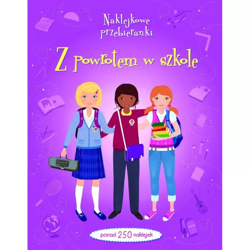 Pomóż Zuzi, Hani i Laurze wybrać stroje na pierwsze dni nowego roku szkolnego! Naklejkowe ubrania pasują na każdą dziewczynkę – możesz sama decydować, co której z nich założysz!