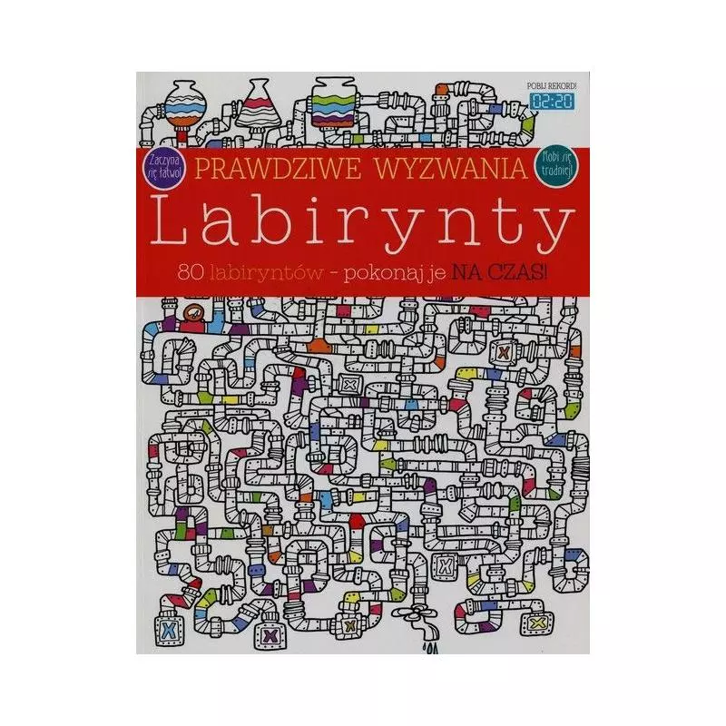 Rysunki labiryntów zostały zestawione od najprostszych do naprawdę zagmatwanych. Znajdziesz też tak skomplikowane, że będziesz miał ochotę, by zajrzeć do rozwiązania na końcu książki! Obok każdego labiryntu widnieje rekordowy czas!