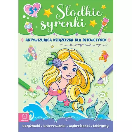 „Słodkie syrenki. Aktywizująca książeczka dla dziewczynek” to zbiór zajmujących łamigłówek oraz kolorowanek do ciekawego spędzania czasu i rozwijania wielu przydatnych umiejętności. W książce dzieci znajdą sześć typów zadań: