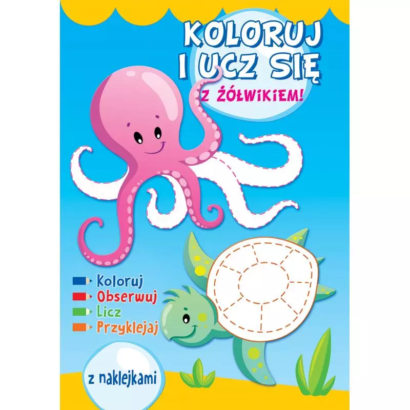 Seria książek przygotowanych z myślą o dzieciach w wieku przedszkolnym, a w środku mnóstwo przeróżnych zadań: rysowanie po śladzie, łączenie kropek, kolorowanie według specjalnego kodu, kolorowych kropek lub zgodnie z kolorem konturów. Maluch ćwiczy rączkę, ale też rozwija zmysł obserwacji, wyszukując różne elementy i dobierając kolory. Opanowuje też podstawy liczenia. A zabawę uatrakcyjniają polecenia z wykorzystaniem kolorowych naklejek.