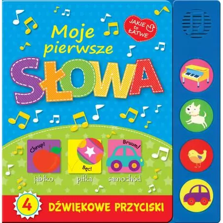 Książka z panelem dźwiękowym dla młodszych dzieci do nauki pierwszych słów i cyfr. W książce znajdują się 4 przyciski. Przyjazne i proste grafiki są dostosowane do wieku dziecka.