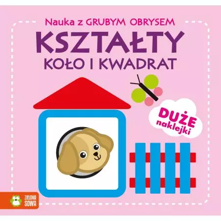 Nauka z grubym obrysem to seria książeczek z prostymi ilustracjami i grubym, kolorowym obrysem. W każdej książce znajdują się duże naklejki do wykorzystania w konkretnym miejscu. Maluch dokleja okrągłe koła samochodom, trójkątny ser myszce, a z kwadratowych naklejek buduje dom.