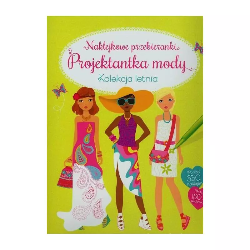 Projektuj stroje dla modelek! Pomogą ci w tym naklejki, z których ponad 150 możesz pokolorować tak, jak chcesz. Dzięki wskazówkom oraz podpowiedziom dotyczącym łączenia barw i wzorów stworzysz kreacje do całej letniej kolekcji.