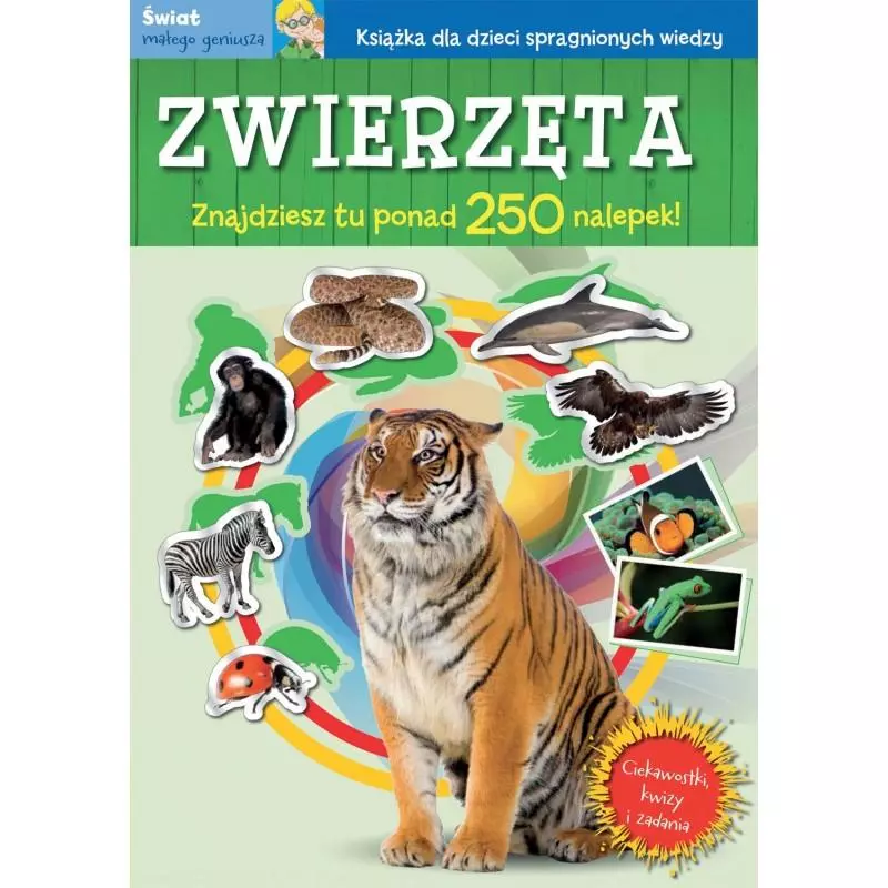 Książka zabiera czytelników w fantastyczną podróż do świata zwierząt. Dzieci poznają gatunki zamieszkujące różne regiony świata, uzupełnią ilustracje naklejkami i rozwiążą krzyżówkę, a na końcu sprawdzą swoją wiedzę, rozwiązując kwizy tematyczne.