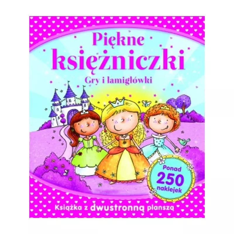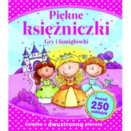 Odwiedź śliczne księżniczki w ich zachwycających pałacach! W książce znajdziesz ponad 250 nalepek wielokrotnego użytku, składaną dwustronną planszę, na której można je przyklejać, oraz mnóstwo ciekawych zagadek, gier i wypychanek. Godziny wspaniałej zabawy gwarantowane. W serii książeczek z dwustronną planszą znalazły się tytuły: Wspaniałe dinozaury, Wyjątkowe maszyny, Piękne księżniczki, Fantastyczne wróżki.
