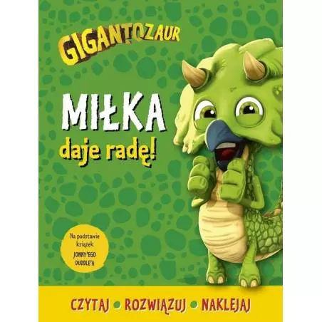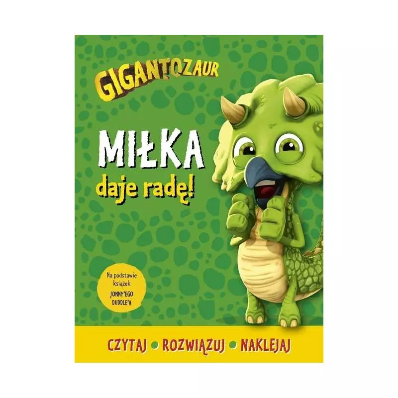 Czy istnieją książki o dinozaurach idealne dla czterolatka? Przekonaj się o tym, zanurzając się w opowieść prosto z pradawnej Kretanii, fikcyjnej wyspy zamieszkanej przez niezwykłe stworzenia. Znajdziesz tam nie tylko tajemniczego Gigantozaura, który budzi emocje i rozpala wyobraźnię, lecz także inne, dużo mniejsze dinozaury. Każdy z nich – Miłka, Czupur, Rudzia i Dudek – przeżywa podstawowe radości i troski, które towarzyszą także dzieciom w wieku przedszkolnym. Dzięki temu książki z serii Gigantozaur stanowią niebywale ciekawą i ważną lekturę dla kilkulatka. „Miłka daje radę” to opowieść o małej dinozaurzycy, która uwielbia tańczyć, śpiewać i bawić się z przyjaciółmi. Czeka ją jednak nie lada wyzwanie: jej starszy brat Tops musi przygotować ją do ważnego wydarzenia, którym jest… triceratopsowy sprawdzian. Oby tylko Miłka potraktowała to poważnie… Gdy ich przygotowania zwracają uwagę gigantozaura i Tops wpada w tarapaty, to właśnie Miłka ratuje sytuację. Książka oprócz opowiastki zawiera ciekawe i zróżnicowane zadania dostosowane do wieku odbiorcy oraz zestaw okrągłych naklejek, które należy umieścić we wskazanych miejscach. Dzięki dodatkowym atrakcjom najmłodsi fani dinozaurów mogą urozmaicić lekturę innymi aktywnościami. W każdej z książeczek z serii "Czytaj, rozwiązuj, naklejaj" dziecko ma okazję poznać bliżej jednego z czworga przyjaciół z Kretanii. Są nimi triceratops Miłka, brachiozaur Dudek, ankylozaur Rudzia oraz parazaurolof Czupur, bohaterowie animowanego serialu dla najmłodszych „Gigantozaur”. Ilustrowana opowiastka i ciekawe zadania zachęcą młodych fanów dinozaurów do dalszych poszukiwań, mogą być punktem wyjścia do pogłębienia wiedzy o dinozaurach. Naładem wydawnictwa Olesiejuk ukażą się również następujące tytuły z cyklu „Czytaj, rozwiązuj, naklejaj”. „Gigantozaur. Dudek chce urosnąć!” „Gigantozaur. Czupur ma misję!” „Gigantozaur. Rudzia jest pomysłowa!”