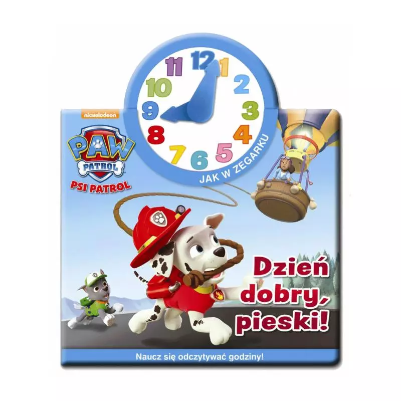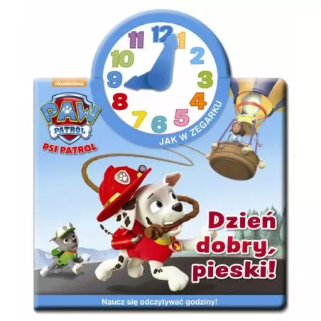 Książka z bohaterami Psiego Patrolu oraz zegarem do nauki odczytywania godziny dla najmłodszych. – „Psi Patrol. Jak w zegarku” to historia Psiego Patrolu, dzięki której najmłodsi uczą się posługiwania zegarkiem. W Zatoce Przygód rozpoczyna się wielki wyścig balonów. Sprawdź, czy Psi Patrol naprawi balon na czas.