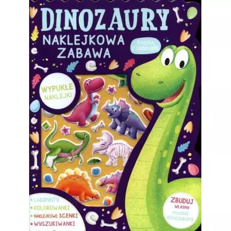 W tej książce znajdziesz mnóstwo zadań z dinozaurami: labirynty, scenki do uzupełnienia trójwymiarowymi naklejkami, kolorowanki według barwnego kodu, wyszukiwanki i wiele innych. A dzięki wypychankom zbudujesz własnego dinozaura.