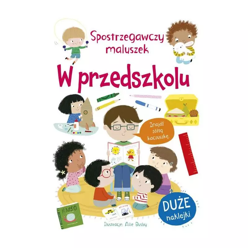 W książkach z serii „Spostrzegawczy maluszek“ ciekawe świata przedszkolaki znajdą rysunki różnych postaci, zwierząt, przedmiotów i obiektów, a także mnóstwo zadań, by ćwiczyć spostrzegawczość, liczenie, rozpoznawanie kształtów i kolorów oraz rozumienie przeciwieństw. Duże naklejki, którymi trzeba uzupełnić kolejne strony, zapewnią dzieciom dodatkową zabawę.