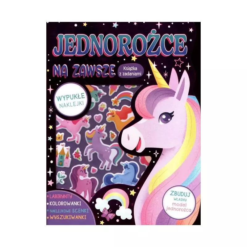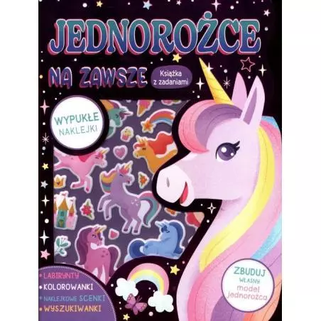 W tej książce znajdziesz mnóstwo zadań z magicznymi jednorożcami: labirynty, scenki do uzupełnienia trójwymiarowymi naklejkami, kolorowanki według barwnego kodu, wyszukiwanki i wiele innych. A dzięki wypychankom zbudujesz własnego jednorożca.