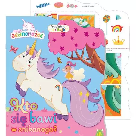 Kolorowa książka w nietypowym kształcie. W roli głównej uwielbieni przez dzieci bohaterowie bajek, którzy zachęcają małych czytelników do wspólnej zabawy, rozwiązywania łamigłówek, labiryntów, zagadek oraz do kolorowania. W środku także dwa arkusze naklejek.