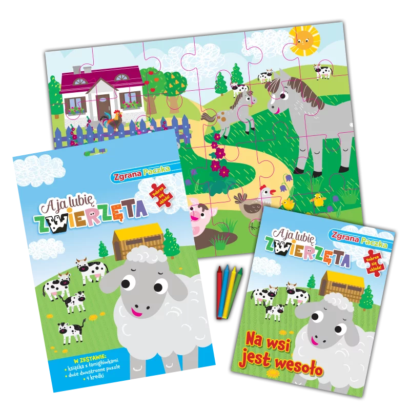 Zestaw Zgrana paczka, ruszaj na wspaniałą przygodę. Megapaczka zawiera książkę z mnóstwem zadań i łamigłówek, kolorowe kredki oraz dwustronne puzzle. Jeden z obrazków układanki można pokolorować według własnego pomysłu. Zgrana Paczka naprawdę dobrze się układa. Sprawdź to! Produkt zawiera zawieszkę na euro haczyk.