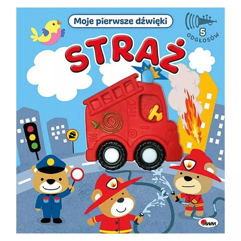 Książka zabiera małych czytelników w niezapomnianą PODRÓŻ. Dzieci znajdą w niej krótkie WIERSZYKI związane z pracą wozu strażackiego oraz WYRAZY NAŚLADUJĄCE ODGŁOSY wydawane przez ten pojazd. Wyróżnikiem publikacji jest silikonowy moduł dźwiękowy w kształcie pojazdu prezentujący 5 różnych DŹWIĘKÓW. Dzięki książce maluch dowie się, jakie dźwięki wydają poszczególne części wozu strażackiego. Sympatyczne ILUSTRACJE charakteryzują się ŻYWĄ KOLORYSTYKĄ.