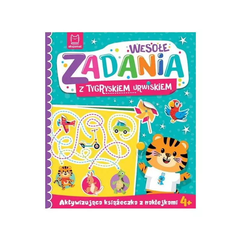 Bohater książeczki – tygrysek – zaprasza do wspólnej zabawy w przyklejanie naklejek, wskazywanie, rysowanie i łączenie. Pracując z książeczką, dziecko wzbogaca słownictwo, doskonali motorykę małą, nazywa kolory i zwierzęta.