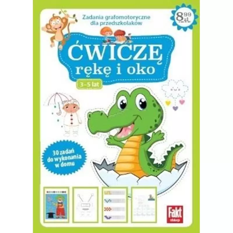 Zabawy grafomotoryczne to zbiór ćwiczeń dla dzieci w wieku przedszkolnym, które w zachęcający sposób przygotowują do nauki pisania. Wesołe zwierzątka i przerywane kolorowe linie łączą naukę z zabawą. Każde z rozwiązanych zadań można pomalować farbami, kredkami, flamastrami lub wykleić bibułą lub kolorowym papierem. Ćwiczę rękę i oko to kreatywne narzędzie pomocne w rozwijaniu motoryki małej.