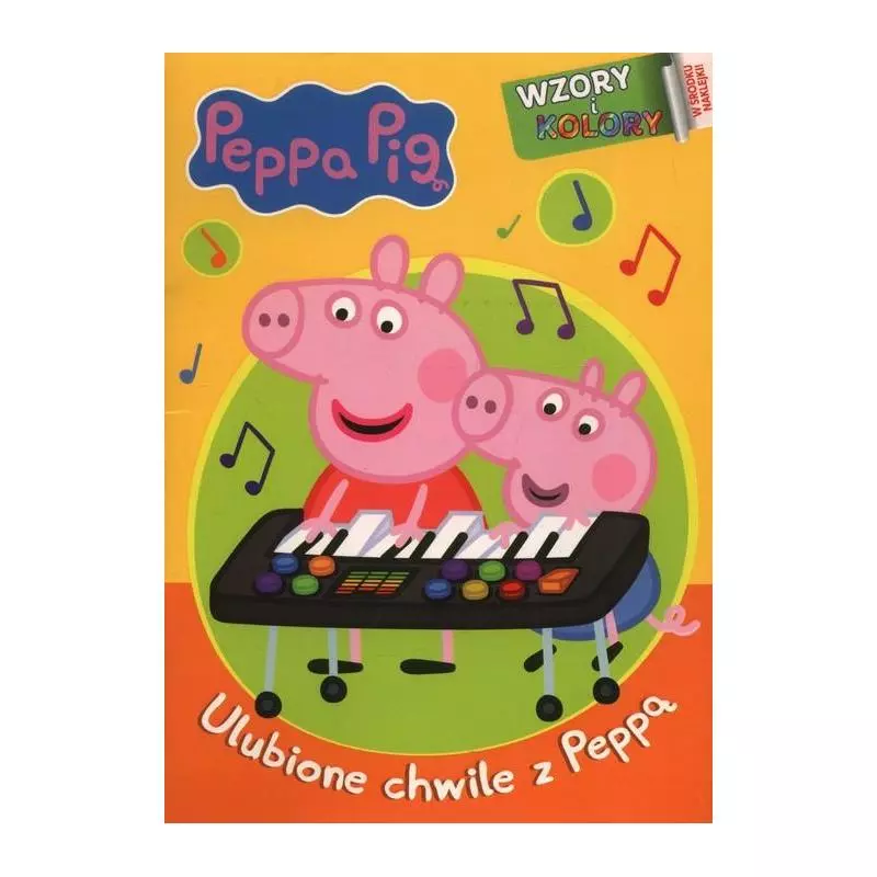 Przyklej naklejkę jako wzór i pokoloruj najpiękniejsze obrazki ze Świnką Peppą i jej przyjaciółmi! Książka Peppa Pig. Wzory i kolory to wyjątkowa propozycja dla fanów Świnki Peppy, jej rodzinki i przyjaciół. Zawiera piękne kolorowanki na 16 stronach i naklejki. Wystarczy przykleić naklejkę – wzór i pokolorować obrazki z ulubionymi bohaterami z bajki.