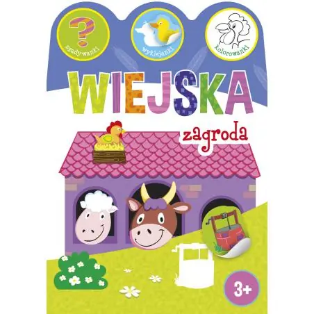 Aktywizująca książeczka dla najmłodszych. Oprowadź dziecko po wiejskim gospodarstwie. Maluch pozna tu różnych mieszkańców zagrody, dowie się, co rośnie w sadzie i na polu, kto pilnuje podwórka i kto budzi wszystkich o świcie. Zabawa dołączonymi do książki naklejkami, które należy dopasować do białych kształtów na ilustracjach, to