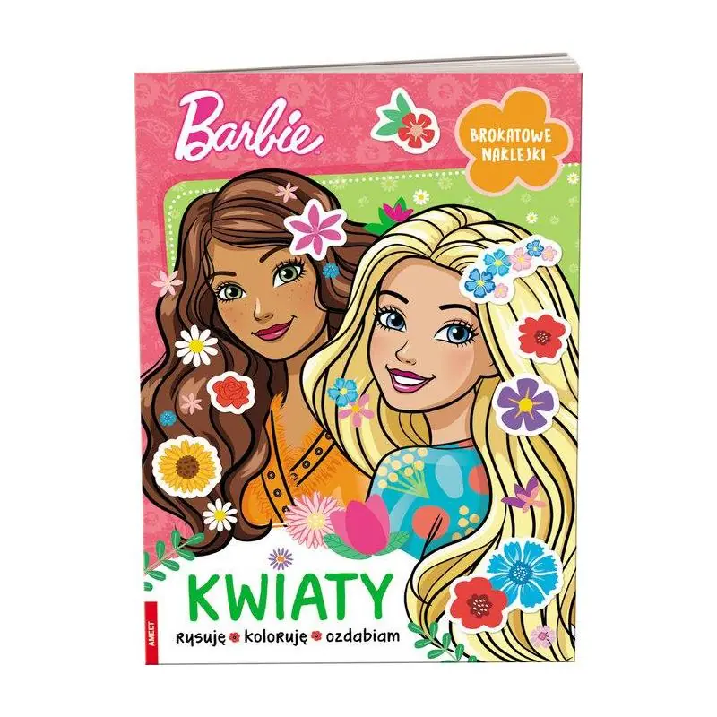 Poznaj piękny i kolorowy świat kwiatów! W książce znajdziesz proste sposoby na ich rysowanie, a także mnóstwo brokatowych naklejek, którymi możesz ozdabiać fryzury i stroje Barbie oraz jej przyjaciółek. Tulipany, róże, niezapominajki, chabry – sięgnij po kredki i mazaki, by nadać barwy tym uroczym kwiatom!