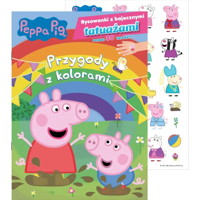 Rysowanki z bajecznymi tatuażami to fantastyczna książka z ulubionymi bohaterami, w której dziecko znajdzie wiele kolorowanek i zadań do wykonania. Do publikacji dołączone są, uwielbiane przez maluchy, zmywalne tatuaże, które wywołają uśmiech na twarzy każdego fana świnki Peppy, jej rodzinki i przyjaciół!