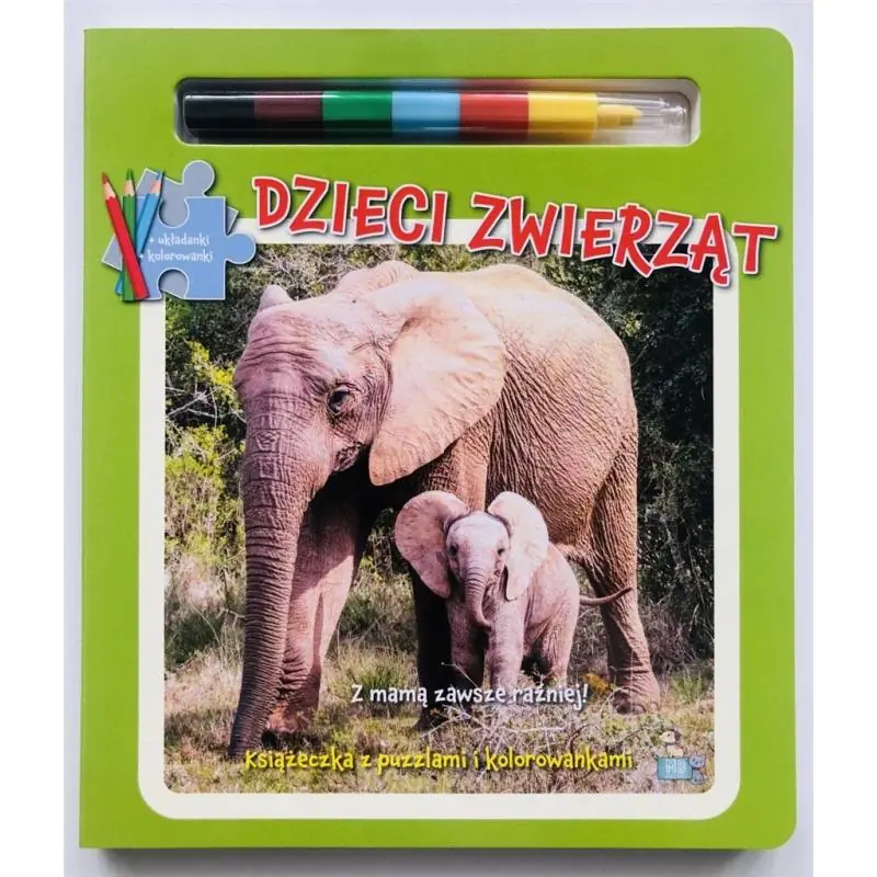 Puzzle i kolorowanki wspomagają rozwój dziecka: jego kreatywność, koordynację wzrokowo-ruchową, pamięć, koncentrację i wyobraźnię przestrzenną. Kolorując, maluch przygotowuje się do nauki pisania, a układając puzzle, ćwiczy swoje zdolności motoryczne i nabiera wprawy w odróżnianiu kształtów oraz rozpoznawaniu obiektów. Dzięki naszej wyjątkowej serii wydawniczej wzbogaci również swoje słownictwo — pozna nazwy zwierząt (gatunki, rasy, miejsca ich występowania, określenia żeńskich, męskich i młodych osobników), środków transportu i innych elementów otaczającego świata, a także nauczy się kojarzyć je z odpowiednimi ilustracjami. Niech nauka nabiera kolorów!