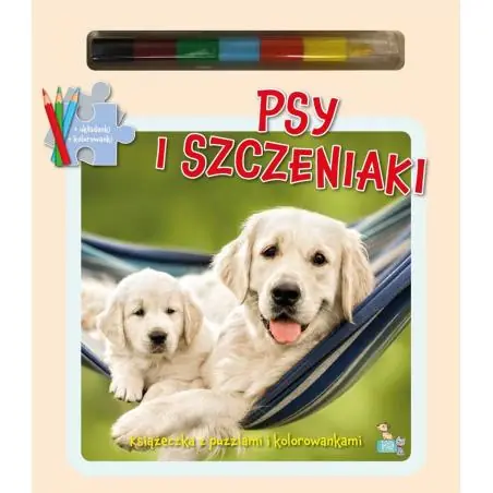 Pięknie zilustrowana fotografiami, kartonikowa książeczka, wzbogacona wbudowanymi w strony trzema arkuszami puzzli. Każdy arkusz składa się z 9 dużych elementów. Pod każdym arkuszem znajduje się obrazek do pokolorowania. Do książeczki dołączona została kredka modułowa w 6 kolorach. Książeczka zawiera krótkie opowiadanie, oraz mnóstwo kolorowych obrazków. Twój maluszek pozna wiele nowych słów, pokoloruje obrazki i nauczy się dopasować do siebie elementy puzzli. Mnóstwo zabawy gwarantowane.