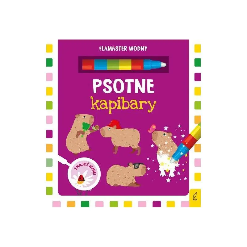 Seria książek do oglądania, wyszukiwania i malowania. Niektóre fragmenty ilustracji są pokryte specjalną powłoką, która po kontakcie z wodą nabiera kolorów. Na rysunkach znajdują się elementy do wyszukiwania, dzięki którym zabawa jest jeszcze ciekawsza. Do każdej książki jest dołączony wodny flamaster. Kiedy pomalowane elementy wyschną, kolory znikają, a dziecko może ponownie pomalować obrazek. Psotne kapibary już czekają na wspólną zabawę! Poznaj ich przygody, wyszukuj ukryte elementy, koloruj i baw się dobrze! A kiedy strony wyschną… Możesz zrobić to wszystko jeszcze raz!