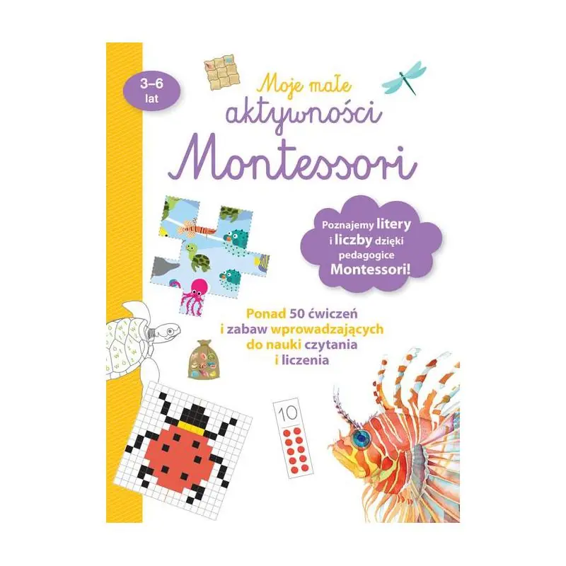 Książka stanowi idealne wprowadzenie do nauki czytania i liczenia poprzez zabawę. Starannie dobrane ćwiczenia, przyjmujące za podstawę założenia pedagogiki Montessori, zachęcą dziecko do uruchomienia zmysłu obserwacji, wyobraźni i kreatywności. Staną się również okazją do wzbogacenia jego słownictwa. Dziecko zapozna się z literami, ich kształtem i odpowiadającymi im dźwiękami, zaangażuje się w ćwiczenia manipulacyjne (wycinanie i układanie puzzli, przyklejanie), łączenie, sortowanie, rysowanie, kolorowanie i liczenie, wykona swoje pierwsze dzieła (zwierzęta z kamyków, zielnik) związane z zajęciami na wolnym powietrzu. W książce znalazły się także smakowite przepisy oraz propozycje gier, które uatrakcyjnią wspólnie spędzane chwile.