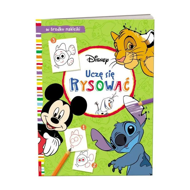 Z tą książką rysowanie to pestka! Proste instrukcje pokażą dziecku, jak krok po kroku, kilkoma ruchami ołówka wyczarować wspaniałe obrazki przedstawiające ulubieńców z animacji Disneya. Znajdziemy tu m.in. Zygzaka McQueena, Olafa z Krainy lodu, Kaczora Donalda, Kopciuszka i wielu innych bajkowych bohaterów. Ale to nie wszystko! Na dzieci czekają też strony, na których wystarczy połączyć kropki, by narysować swoje ulubione postacie. Atrakcyjnym dodatkiem do książki są naklejki do wykorzystania w zabawie.