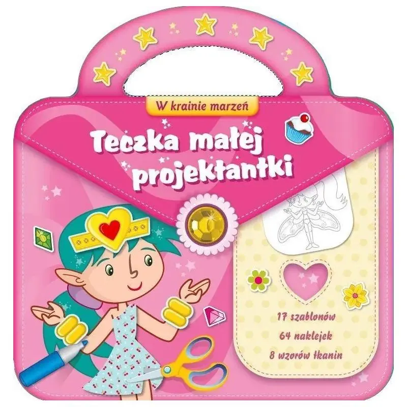 ARTYSTYCZNY ZESTAW dla małych projektantek mody. W poręcznej książeczce w kształcie teczuszki z rączką, którą można zabrać ze sobą w dowolne miejce, zamknięte jest wszystko, co potrzebne do przygotowywania wspaniałych kreacji: - szablony z częściami garderoby, które posłużą jako wzory (wykroje) do odrysowywania zarówno na kartach z modelkami, jak i papierach udających tkaniny; - arkusze kolorowych, ozdobnych papierów udających tkaniny - do samodzielnego przygotowania części garderoby modelek; - arkusze z kolorowymi naklejkami, na których małe projektantki znajdą buty oraz różne dodatki zarówno do strojów, jak i modelek. Te wyjątkowe ubieranki to atrakcyjna propozycja dla młodych stylistek, które lubią twórcze zabawy z naklejkami w kształcie części garderoby i różnorodnych akcesoriów. Korzystając z książeczek, dziewczynki rozwiną swoje zdolności manualne i nauczą się dobierać stroje odpowiednie do okazji. Kolorowe, zróżnicowane naklejki, które zachęcają do eksperymentowania ze stylami i puszczenia wodzów wyobraźni, sprawią, że zabawa będzie trwała bardzo długo!