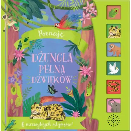 W tej kartonowej książeczce z dźwiękowymi przyciskami na kolejnych barwnych scenkach czekają na odkrycie mieszkańcy dżungli. Maluch pozna zwierzęta w ich naturalnym środowisku, a także posłucha odgłosów, jakie wydają!