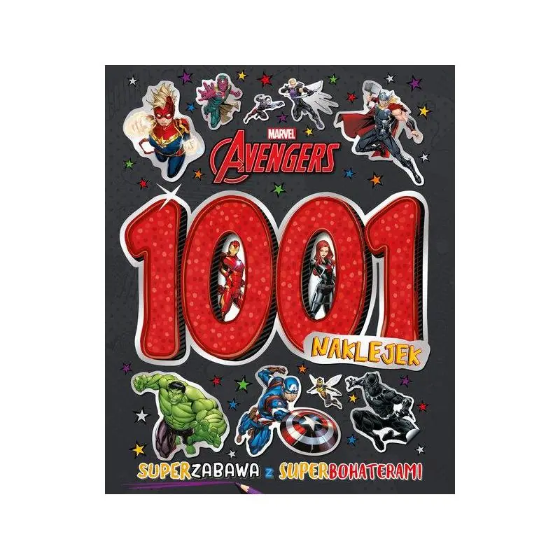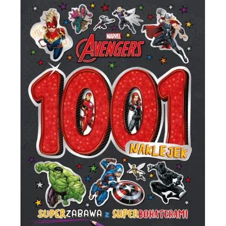 Mnóstwo zadań osadzonych w świecie Avengersów, wyjątkowe naklejki świecące srebrzystym kolorem, oraz jedna gigantyczna naklejka ścienna Mali fani Avengersów znajdą w tej książce mnóstwo łamigłówek, szyfrów, labiryntów i innych zadań, których bohaterami są Iron Man, Czarna Wdowa, Kapitan Ameryka, Hulk i inni członkowie drużyny Avengers. Książka zawiera kilka różnych arkuszy z naklejkami, w tym mozaikowe naklejki do użycia w książce, naklejki z postaciami do przyklejenia w dowolnym miejscu, naklejki z postaciami zadrukowane na srebrnej folii oraz jedna ogromna naklejka do przyklejenia na ścianę lub inną dużą powierzchnię. W serii „1001 naklejek” ukazały się 3 tytuły, poświęcone Spider-Manowi, drużynie Avengers oraz Hulkowi.