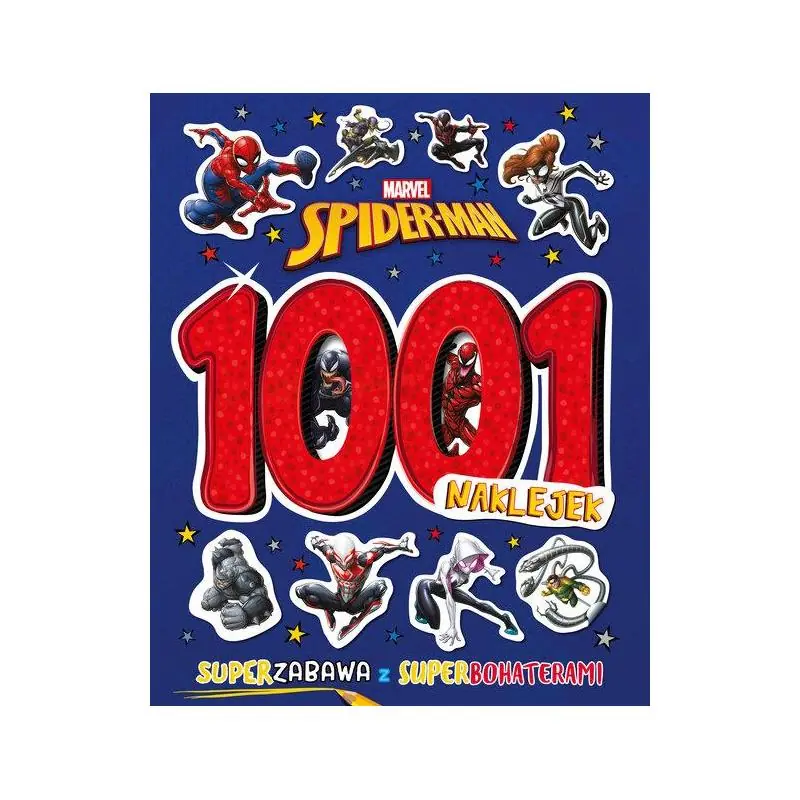 Mnóstwo zadań osadzonych w świecie Spider-Mana, wyjątkowe naklejki świecące srebrzystym kolorem, oraz jedna gigantyczna naklejka ścienna Mali fani Spider-Mana znajdą w tej książce mnóstwo łamigłówek, szyfrów, labiryntów i innych zadań, których bohaterem jest Spider-Man. Książka zawiera kilka różnych arkuszy z naklejkami, w tym mozaikowe naklejki do użycia w książce, naklejki z postaciami do przyklejenia w dowolnym miejscu, naklejki z postaciami zadrukowane na srebrnej folii oraz jedna ogromna naklejka do przyklejenia na ścianę lub inną dużą powierzchnię. W serii „1001 naklejek” ukazały się 3 tytuły, poświęcone Spider-Manowi, drużynie Avengers oraz Hulkowi.
