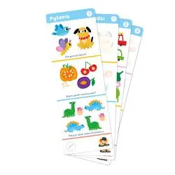 Pytania mają różny poziom trudności, dlatego maluch może łatwo przekonać się, jak wiele już potrafi, oraz w wesoły sposób zdobyć nową wiedzę. Obejrzyjcie razem książeczkę. Przeczytaj zagadkę i poczekaj chwilę na odpowiedź dziecka. Razem sprawdźcie rozwiązanie, które jest na następnej stronie. Razem poszukajcie dalszych informacji na interesujące was tematy. Wymyślajcie własne zagadki na podstawie ilustracji.