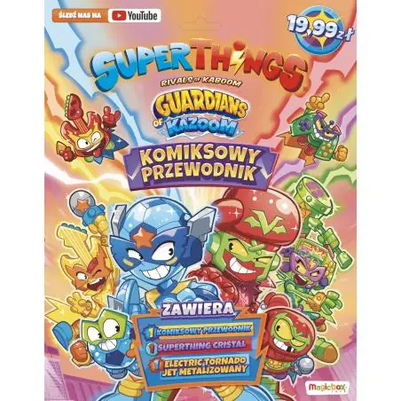 Przeżyj nowe przygody w Kaboom City z SuperThing Guardians of Kazoom. Ten zestaw zawiera 24-stronicowy komiksowy przewodnik opowiadający historię Guardians of Kazoom i Kazoomblasta (nowej, ultrarzadkiej postaci). Oprócz tego znajdziesz tu szczegółowy opis supermocy każdego SuperThinga, Kida i Kazoom Jeta. Dodatkowo Starter Pack zawiera 1 Kazoom Jet z