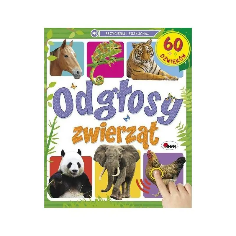 Książka zabiera małych czytelników w niezapomnianą PODRÓŻ DO ŚWIATA ZWIERZĄT. Dzieci znajdą w niej proste WIERSZYKI o wiejskich i dzikich zwierzętach oraz krótkie CIEKAWOSTKI. Wyróżnikiem publikacji jest aż 60 różnorodnych DŹWIĘKÓW. Dzięki niej maluch dowie się, jakie dźwięki wydają koń, dzik, hiena, krokodyl czy panda. Starannie dobrane ZDJĘCIA charakteryzują się ŻYWĄ KOLORYSTYKĄ.