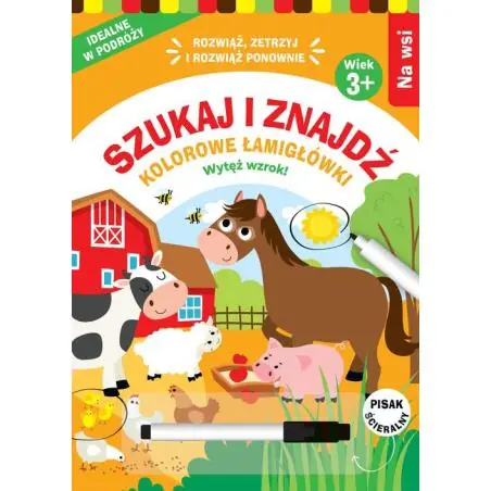 Twoje dziecko lubi zagadki i łamigłówki? Przed nim wiele godzin kształcącej zabawy. Będzie znajdowało różnice, pokonywało labirynty i łączyło elementy w pary. A jeśli będzie chciało ponownie rozwiązać wszystkie zadania, to po prostu zetrze swoje odpowiedzi i zacznie zabawę od nowa. Będzie mogło też podarować tę książkę młodszej siostrze albo koledze i obserwować, jak oni radzą sobie z wyzwaniami.