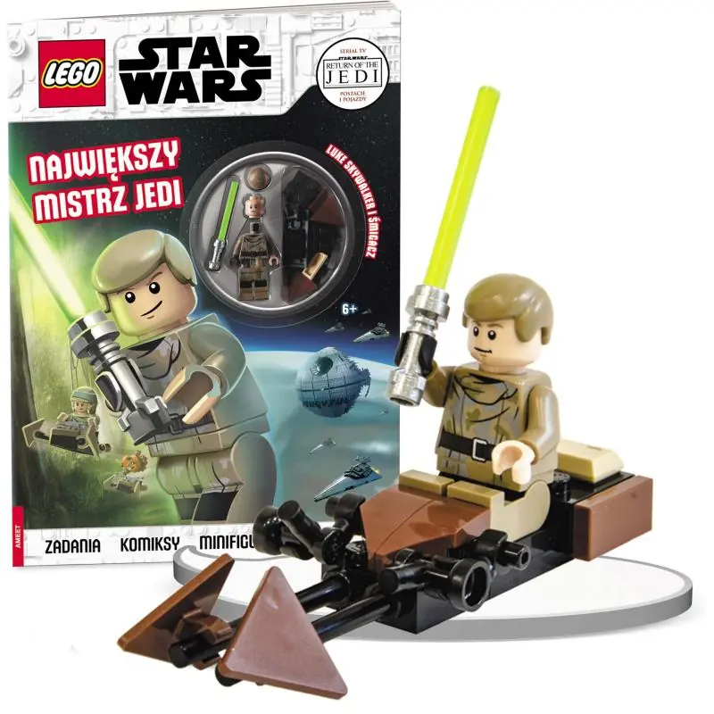 Książka z zadaniami, opowiadaniem, komiksami oraz minifigurką LEGO