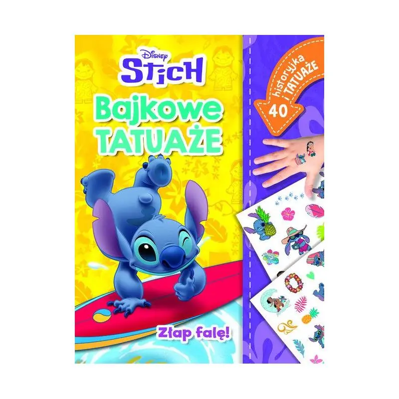 Ilustrowana historyjka o przygodach Lilo i Sticha wzbogacona arkuszem tatuaży z wzorami z bajki. Podczas wspólnego dokazywania na plaży Lilo i Stich słyszą ekscytujące wieści. Za tydzień odbędą się zawody surfingowe. Przyjaciele postanawiają wziąć udział w konkursie. Przed nimi jednak dużo wysiłku. Aby wygrać rywalizację muszą nauczyć