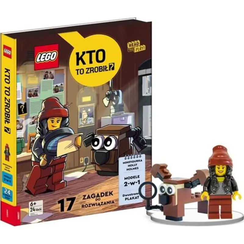Witaj w agencji detektywistycznej Brick City! Poznaj Holly Holmes i Doga Dogsona – parę detektywów gotowych rozwikłać każdą sprawę i schwytać każdego przestępcę. Pomóż im szukać wskazówek, zbieraj dowody i rozwiązuj zagadki najbardziej zuchwałych kradzieży w Brick City. Obudź swoją ciekawość i zostań detektywem wraz z Holly i Dogsonem! W zestawie znajdziesz: • podręcznik detektywa z 5 historiami i 17 zagadkami do rozwikłania, • 24 klocki LEGO®, z których można zbudować minifigurkę Holly Holmes z akcesoriami oraz dwa unikatowe modele psów zaprojektowane specjalnie do tego zestawu, • plakat oraz 5 kopert dowodowych zawierających wskazówki w postaci pocztówek, naklejek itp., • pudełko, które można wykorzystać do stworzenia 2 scenek: agencji detektywistycznej i alei pełnej ukrytych złodziejaszków.
