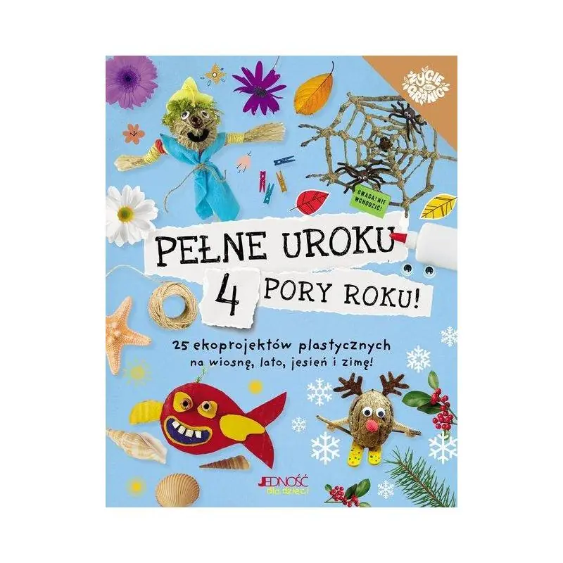Ta książka łączy w sobie ekologię, recykling, kreatywność i świetną zabawę! Zaprasza nas do tworzenia oryginalnych arcydziełek przez cały rok: zieloną wiosną, słonecznym latem, kolorową jesienią i białą zimą! Dzięki świetnym i superprostym pomysłom w niej zawartym będziemy mogli zrobić karmnik dla ptaków, hotel dla owadów, pojemnik na kredki, pudełko na cukierki, magnesy na lodówkę, duszki z wełny, jesienną dynię, doniczkowego stracha na wróble, szyszkową sowę i jeszcze wiele innych ciekawych, efektownych i przydatnych przedmiotów. Do stworzenia naszych arcydziełek wykorzystywać będziemy skarby natury (takie jak kasztany, trawę lub patyczki) i przedmioty codziennego użytku (takie jak puste kartony, spinacze do bielizny czy gąbki do naczyń) – to pomoże nam docenić naturę i rozwinie naszą inwencję twórczą. Zatem do dzieła, mali artyści! Arcydziełka na cztery pory roku czekają na was.