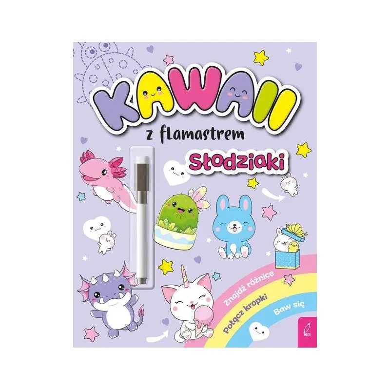 Kawaii to seria pełna zabaw, zagadek i labiryntów z dołączonym flamastrem suchościeralnym. Ciekawe zadania zapewnią zabawę na długie godziny, a możliwość ścierania rysunków pozwoli na tworzenie i odkrywanie nowych przygód wiele razy. Baw się kreatywnie i odkrywaj świat pełen niespodzianek. Rysuj, ścieraj, ćwicz rękę i baw się dobrze ze słodkimi zwierzakami.