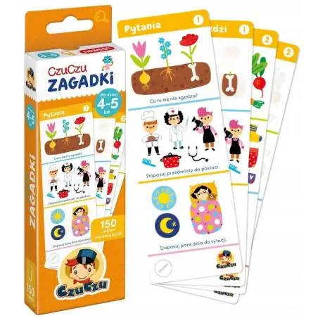 W poręcznej edukacyjnej książeczce znajduje się 150 rozwijających zabaw w postaci pytań i odpowiedzi. Pomysłowe i pełne humoru zadania poruszają tematy bliskie przedszkolakom. Spięta śrubką książeczka ma 100 stron i z łatwością zmieści się w torebce czy plecaku, dlatego warto ją zawsze mieć przy sobie. Wiek: 4-5lat