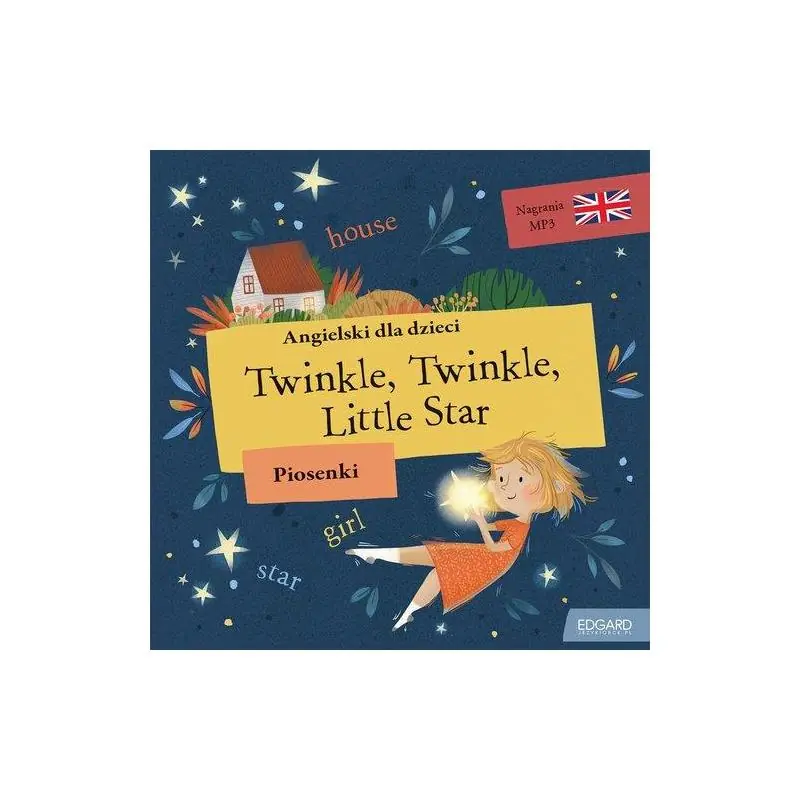 Gdzie pajączek schował się przed deszczem? Dokąd wędruje migocząca gwiazdka? Komu owieczka podarowała worek wełny? Poznaj bohaterów piosenek i zaśpiewaj z nami Angielski dla dzieci. Piosenki –Twinkle Twinkle Little Star to zbiór wpadających w ucho piosenek dla najmłodszych do wspólnego czytania i śpiewania, a także doskonałe wprowadzenie do nauki języka angielskiego. Znajdziecie w nim pięknie zilustrowane, znane i lubiane piosenki dla dzieci, takie jak Twinkle Twinkle Little Star, Incy Wincy Spider czy Baa Baa Black Sheep, które zachęcą dzieci do śpiewania i oswoją z językiem angielskim. Angielski dla dzieci to: - rytmiczne, wpadające w ucho piosenki w interpretacjach native speakerów - polskie tłumaczenia piosenek idealne do śpiewania - pogodne ilustracje rozwijające wyobraźnię wizualną Słuchanie i śpiewanie piosenek: - rozwija intuicję językową - oswaja z mówieniem po angielsku - uczy słownictwa i struktur gramatycznych - uczy prawidłowej wymowy i akcentu Doskonałe źródło materiałów dla nauczycieli!