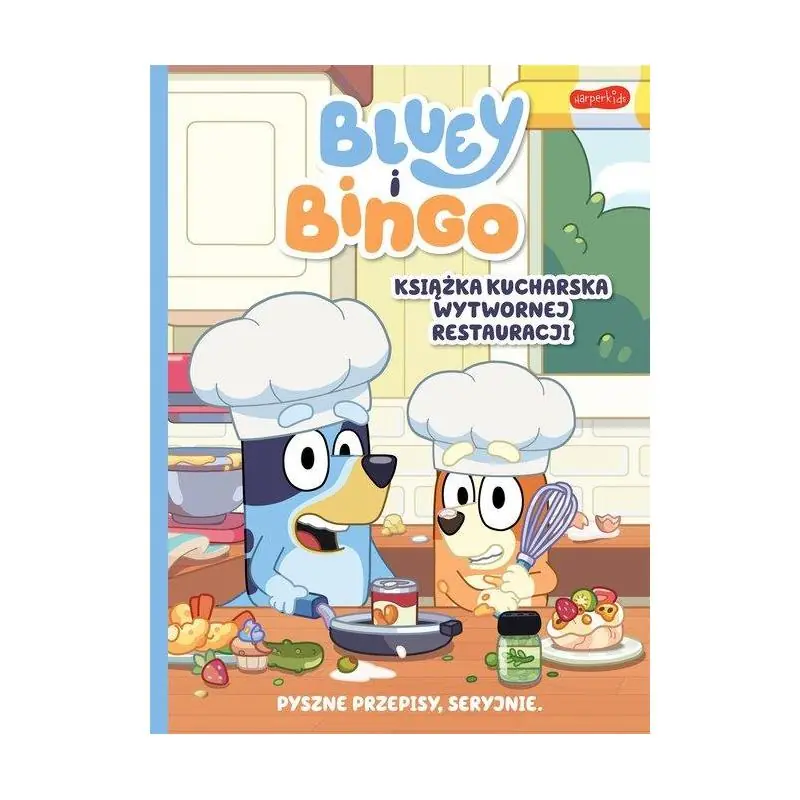 Książka Kucharska Wytwornej Restauracji Blue i Bingo to pomysł na pyszną zabawę w towarzystwie bohaterów serialu Bluey! Znalazły się tu przepisy na dania znane z kreskówki – od prostych, jak Wróżkowy Chleb, po nieco trudniejsze – Babeczki z Cienistego Szlaku, Miniracuchy czy Omlet. Ale uwaga! Nawet najbardziej skomplikowane potrawy nie