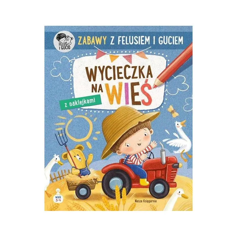 Kreatywny zeszyt dla najmłodszych. Krótka historyjka przedstawiona na początku książeczki stanowi punkt wyjścia do zabaw zawartych na dalszych stronach. Zeszyt zawiera aktywności dotyczące czytania, słuchania, myślenia matematycznego i logicznego oraz ćwiczenia na spostrzegawczość, a przede wszystkim ćwiczenia wspierające pracę rąk (grafomotoryczne), dzięki czemu w naturalny sposób wspiera rozwój dzieci. Tom „Zabawy z Felusiem i Guciem. Wycieczka na wieś” przeznaczony jest dla dzieci w wieku 3–4 lat. Wydanie z naklejkami kolorowymi i do kolorowania! Katarzyna Kozłowska – absolwentka pedagogiki specjalnej Uniwersytetu Adama Mickiewicza oraz edukacji artystycznej Uniwersytetu Artystycznego w Poznaniu. Nauczycielka wychowania przedszkolnego. Autorka bestsellerowej serii „Feluś i Gucio”, w której kładzie nacisk na rozwój emocjonalny dziecka, odwołując się do jego przeżyć i sposobu poznawania świata. Marianna Schoett – ilustratorka książek dla dzieci. Ukończyła Państwowe Liceum Sztuk Plastycznych w Bydgoszczy, a następnie kontynuowała naukę na Wydziale Sztuk Pięknych UMK w Toruniu. Rysowanie to od zawsze jej hobby. Już od pierwszego tomu Feluś i Gucio na stałe wpisali się w jej codzienne życie i wytyczają jego rytm, od pewnego czasu także jako bohaterowie gier i zabawek. Nadawanie kształtów kolorowemu światu Felusia i Gucia to obszar, w którym czuje się kompletnie spełniona! Sukces serii przyjmuje z wielką radością, bo zawsze chciała ilustrować książki.