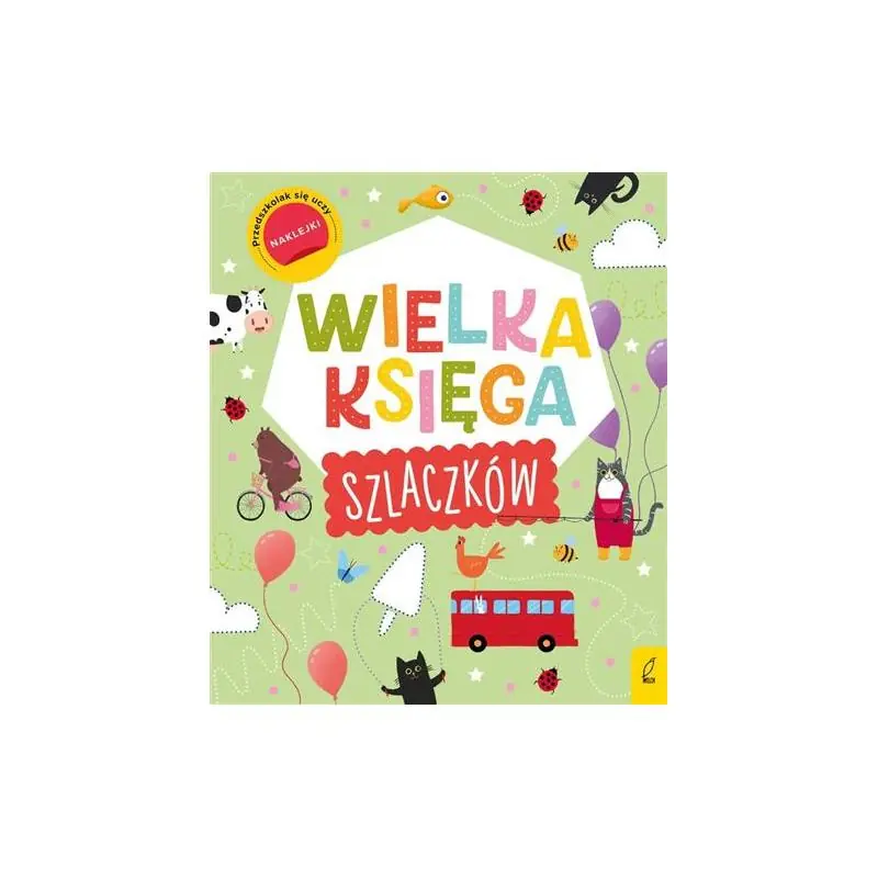 Z Wielką księgą szlaczków nie będziesz się nudzić! Czeka tu na ciebie mnóstwo kolorowych wzorków, bazgrołów, linii do rysowania po śladach i? aż 6 stron naklejek. Ćwicz rękę i przygotuj się do nauki pisania!