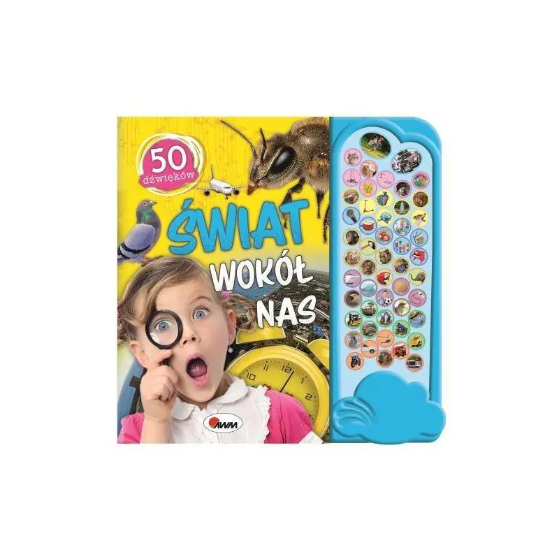 Książka zabiera małych czytelników w niezapomnianą PODRÓŻ PO OTACZAJĄCYM ŚWIECIE. Dzieci znajdą w niej proste WIERSZYKI o zwierzętach czy przedmiotach znajdujących się w różnych miejscach, mi.in. w domu, w parku, w przedszkolu, w zoo czy na budowie. Wyróżnikiem publikacji jest aż 50 różnorodnych DŹWIĘKÓW. Dzięki niej maluch dowie się, jakie dźwięki wydają małpa, gołąb, rower, pralka czy helikopter. Starannie dobrane ZDJĘCIA charakteryzują się ŻYWĄ KOLORYSTYKĄ.