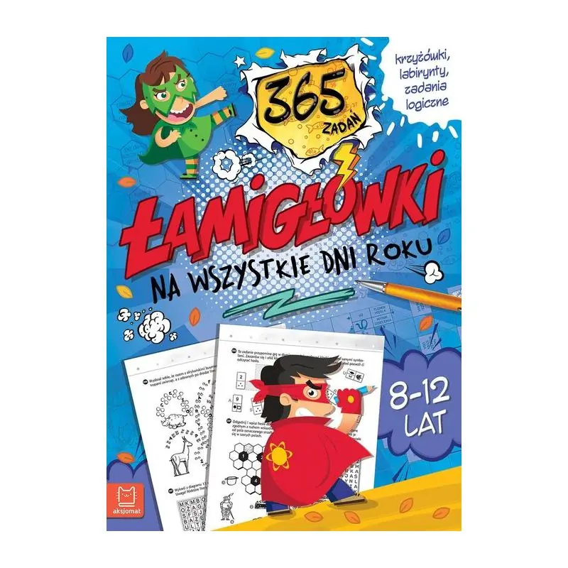 Zbiór łamigłówek na cały rok: na długie zimowe wieczory, na słoneczne wiosenne popołudnia, na upalne dni lata i deszczowe poranki jesieni, a wśród nich: labirynty, rebusy, krzyżówki i wykreślanki, zadania na spostrzegawczość oraz wymagające logicznego myślenia.
