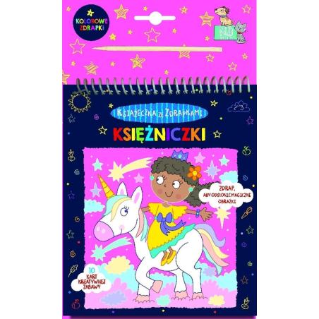 Odkryj tajemnice księżniczek i ich pięknych pałaców dzięki wyjątkowym ilustracjom w formie zdrapek! Zdrapuj i poznawaj różne postaci, miejsca, zwierzątka, rośliny i królewskie przedmioty. A może puścisz wodze wyobraźni i „wydrapiesz” swoje wzorki albo inne szczegóły? Rozwiązuj ciekawe zadania, wzbogacając słownictwo, ćwicząc ortografię, liczenie i spostrzegawczość.